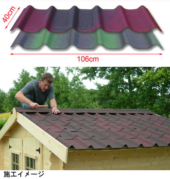 DIYで施工できる屋根建材です。軽量で取付け簡単です。アスファルトを独自技術で含浸させた屋根材で建物の屋根、壁など多用途に施工できます。物置や車庫などの屋根材に最適。